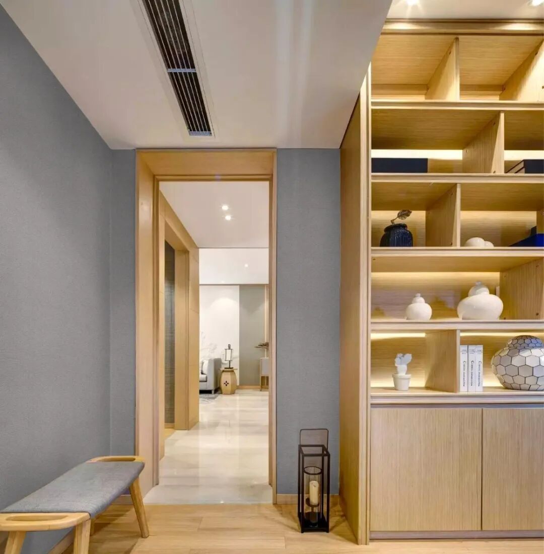 清新的生活意境,离不开高级灰的大肆渲染。书房的中灰色墙布,搭配同色系窗帘和落地式宫灯,营造出午夜月光恬静如水、抒情唯美的古朴氛围。