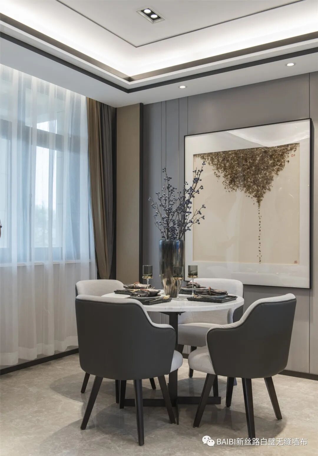 餐厅的色调也是清一色灰白色系,让空间很清新,给人舒适惬意的感觉。