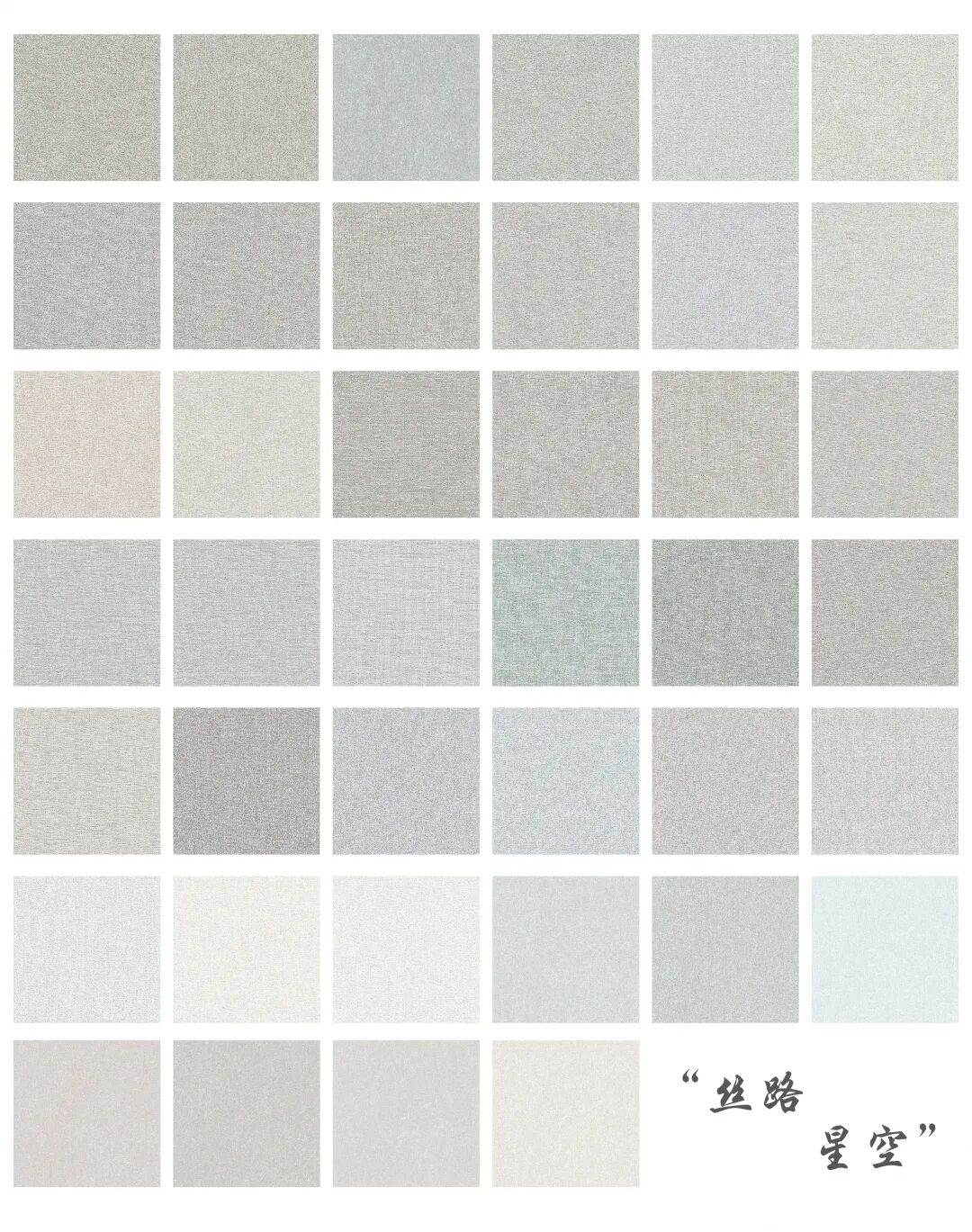 新品具有哑光仿麻、素雅暗花、吸音隔热等特点。风格偏向简约温馨、朴实自然。其中的20127系列采用“满天星”的小提花设计,气质清新、色彩柔和。“丝路星空”,星河长明!