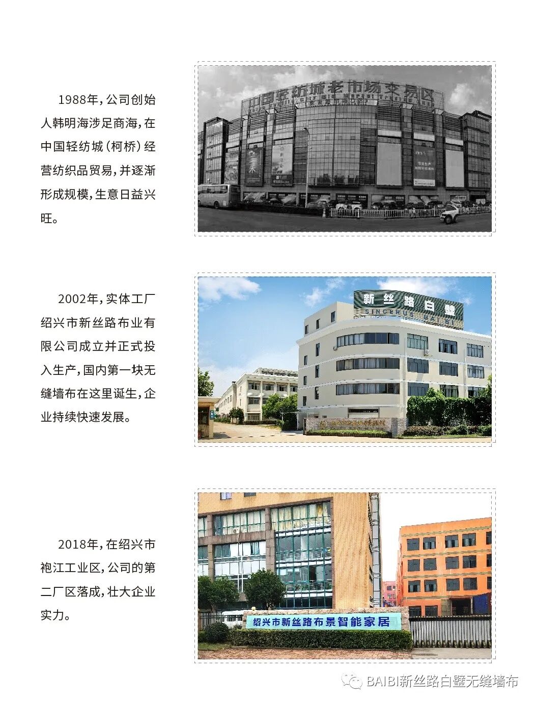 创新之路,没有终点。之后,新丝路白璧又成功开发了软饰无缝墙布、体验式墙布展片、仿毛感墙布、俏装墙布等新产品。就在去年,“俏装”墙布一经面市,深受广大消费者的青睐和喜爱,成为新丝路白璧又一明星“爆款”产品。这个独具风格的新品类外观时尚、施工便捷、环保无味,未来市场前景非常广阔。