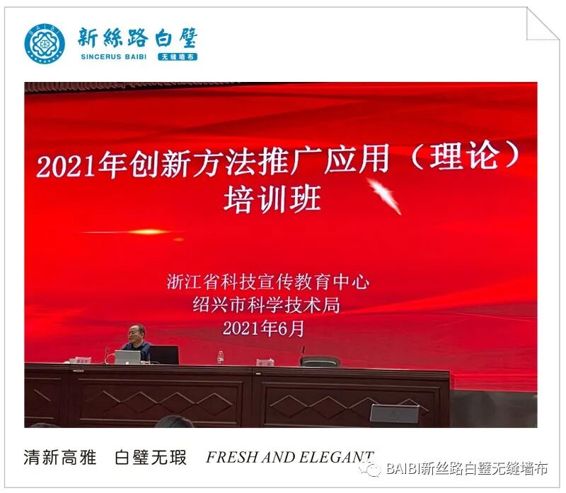 2021年6月28日,浙江省科技宣传教育中心,绍兴市科技局组织主办的《2021年绍兴市创新方法推广应用培训班》正式开班,培训对象以高新技术企业的科技企业技术人员为主。培训内容主要包括:创新思维、创新方法(TRIZ技术)、TRIZ应用案例、TRIZ计算机辅助软件等。绍兴市新丝路布业有限公司特派公司高层领导参加了此次培训班。