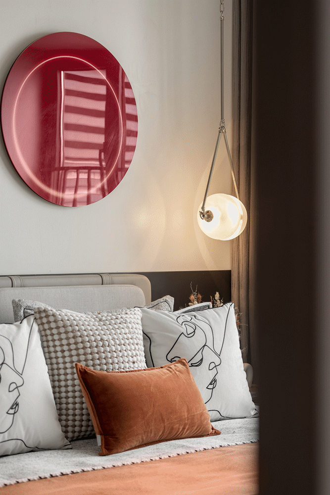 红色代表着活力热情,是一种鲜明的、有生气的色彩,它既可以增加现代简约风格房间的亮度,也可以为质朴空间增加时髦感。它与灰白色搭配,在素雅柔和的色调中加入鲜亮的色彩,会显得高雅大气、富有现代感。