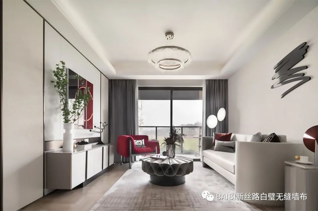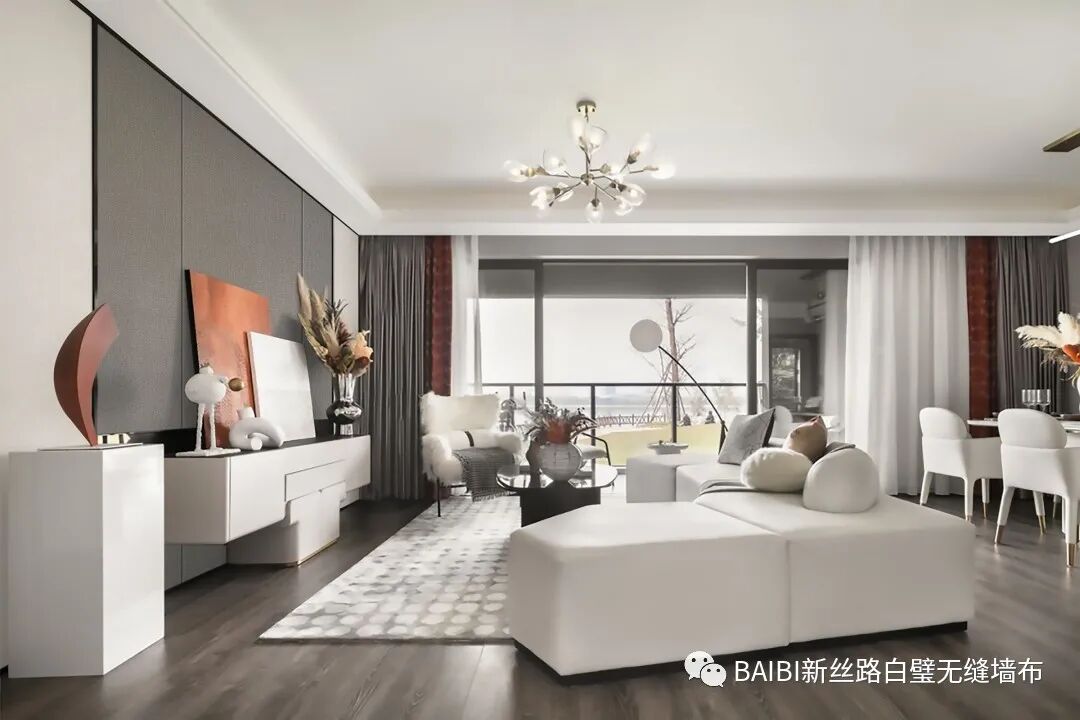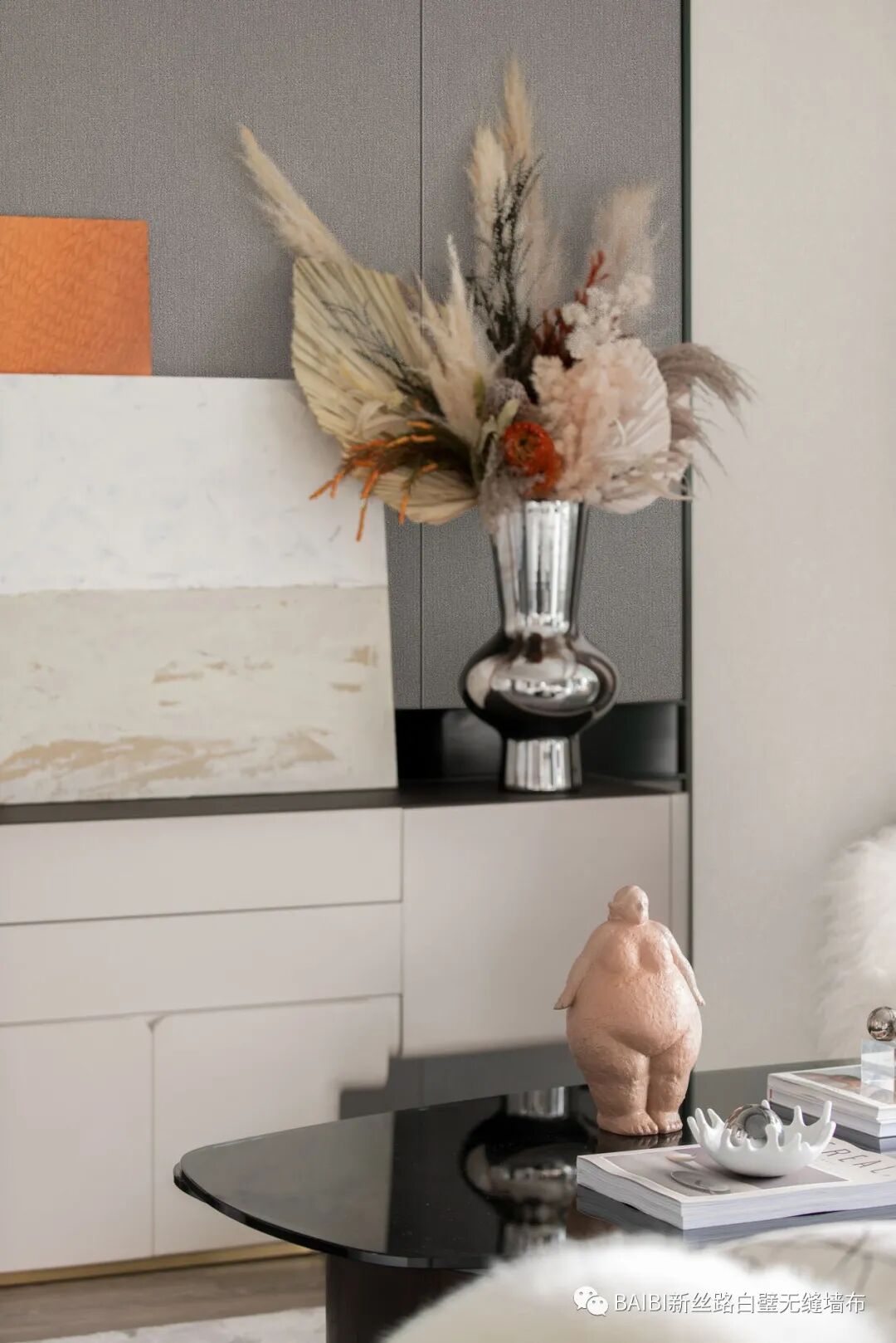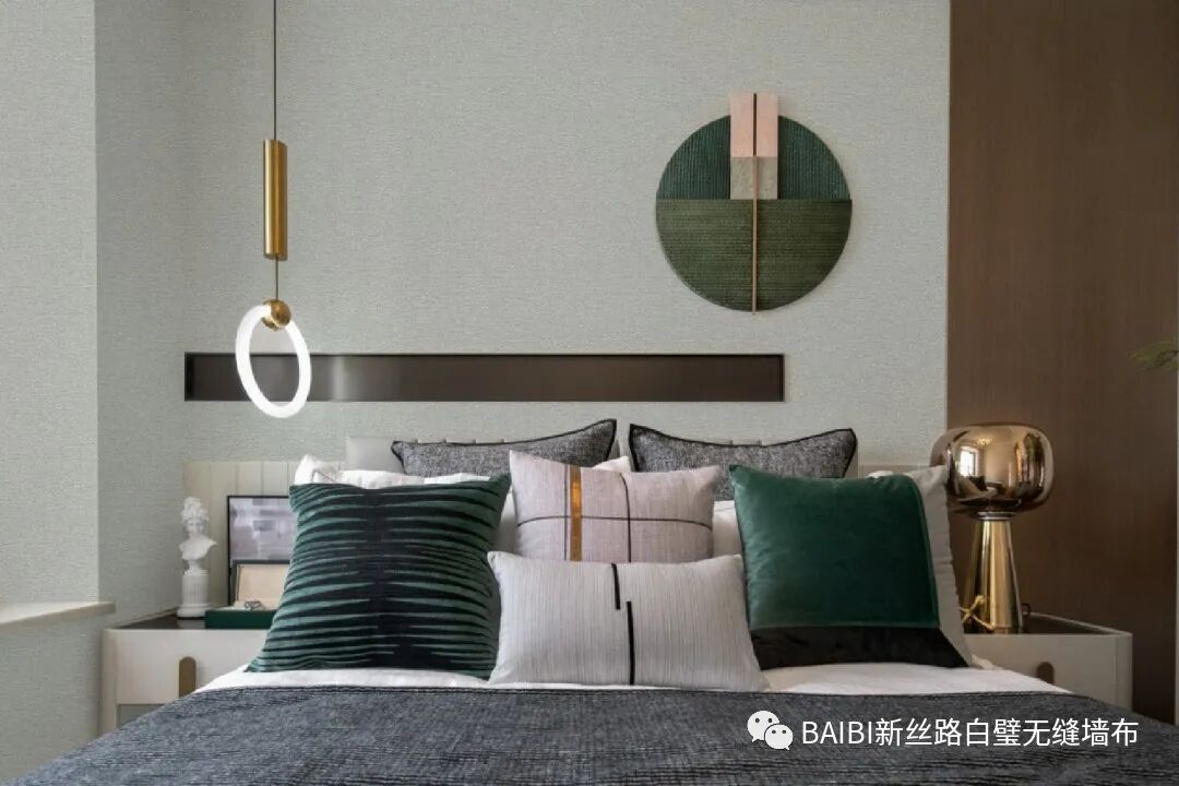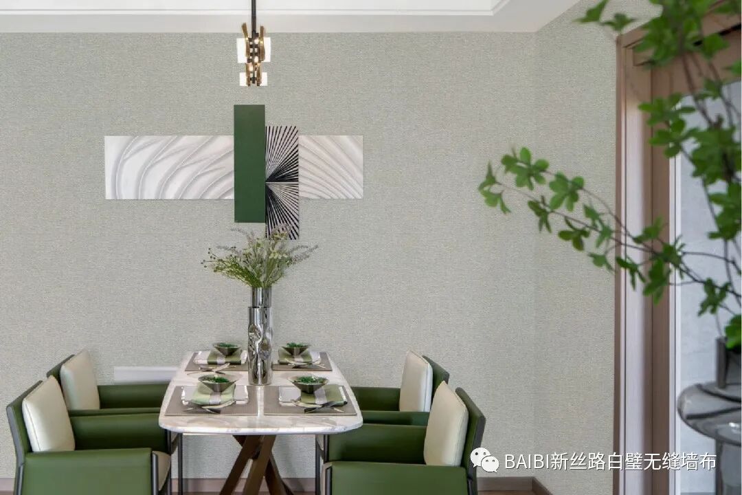 空间大面积铺贴淡雅耐看、哑光仿麻、素中隐花、高档大气的新丝路白璧墙布新品,是当下墙面装饰个性化的流行趋势。明艳的色彩点缀,有着丰富的活力和视觉张力,令空间更加充满想象力。