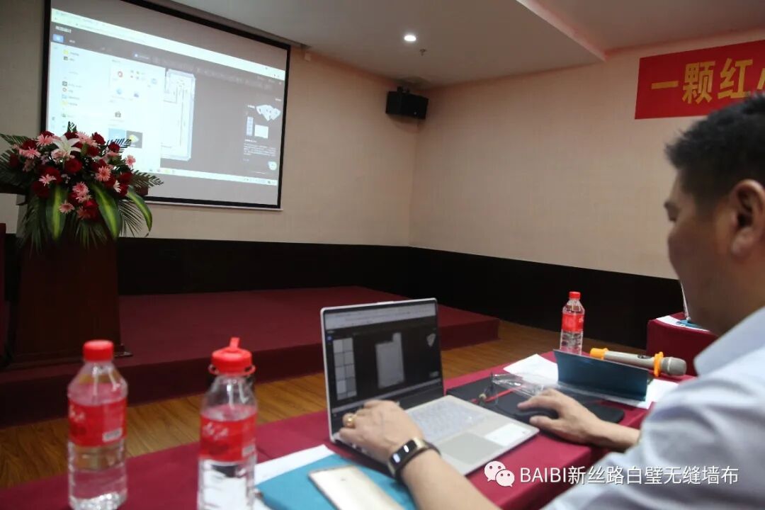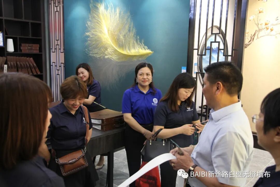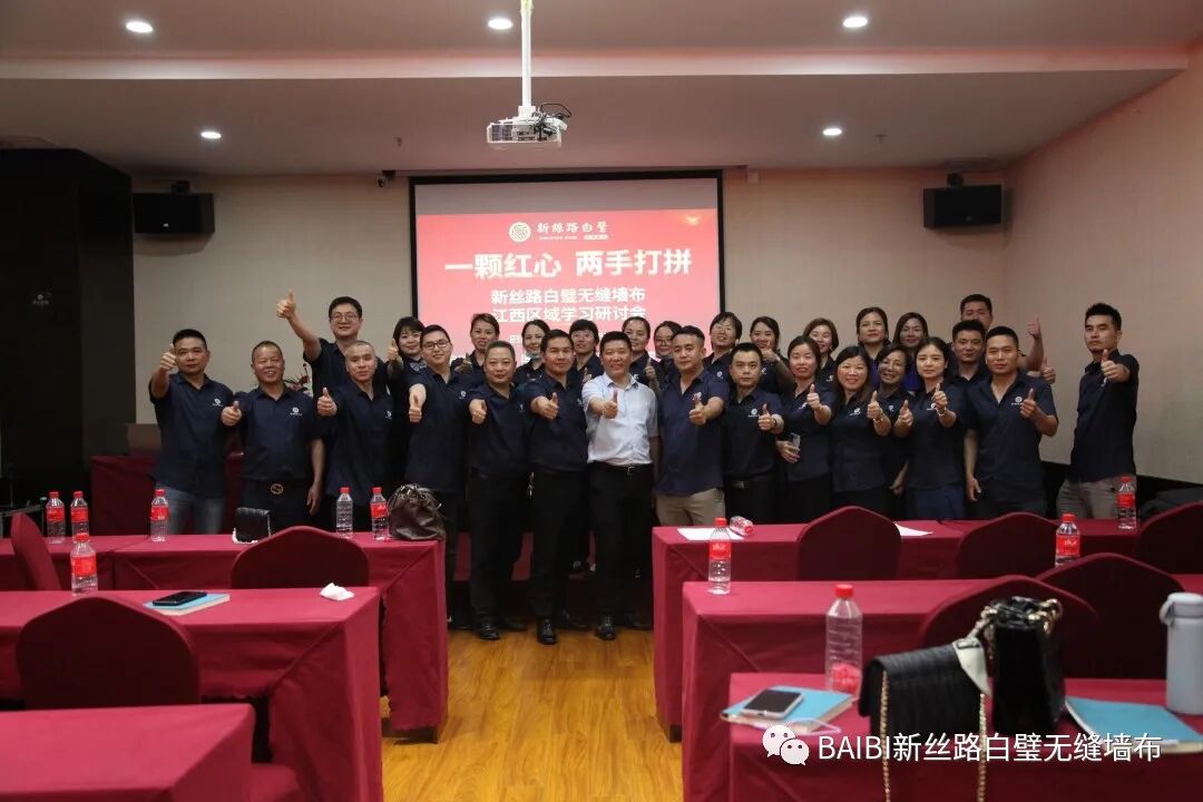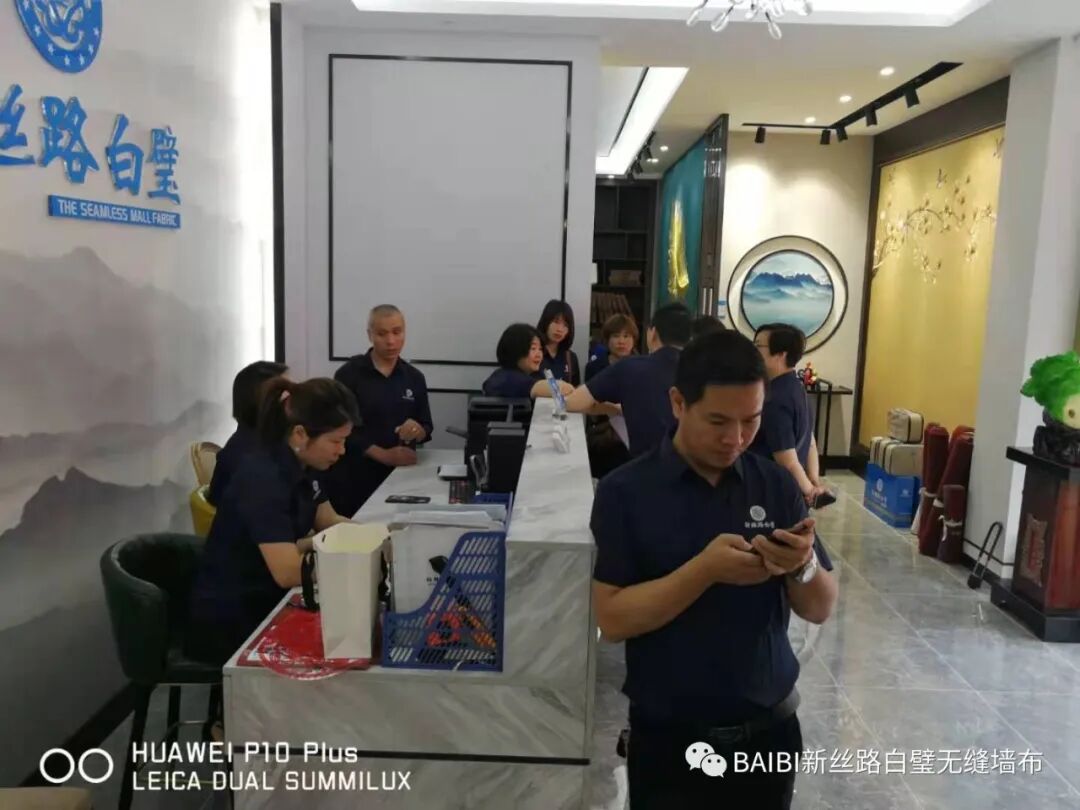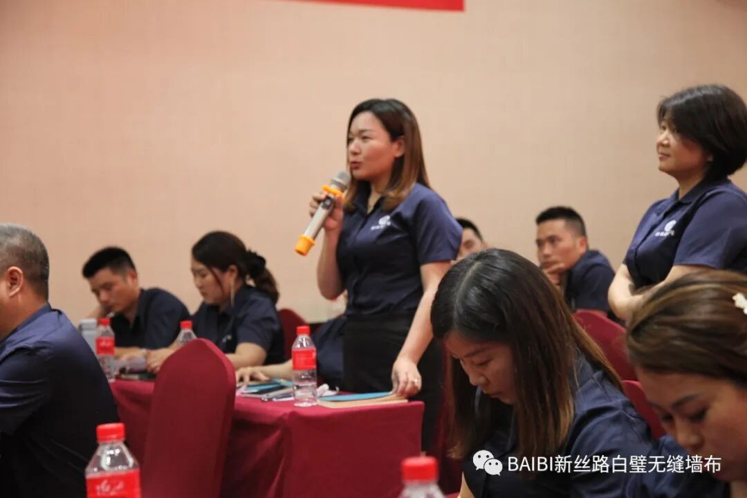 在下午的会议流程中,首先,销量领先的家人分享自己的成功经验,其他家人认真聆听,做好笔记。紧接着,大家共同分析市场现状,讨论切实可行的应对方案,而在讨论其它新材料频繁冲击市场的话题时,大家都表现出积极乐观的心态,环保、优质的产品才是消费者乐意去选择的产品,各位家人对墙布的未来,特别对新丝路白璧热胶墙布的未来都充满必胜的信心!